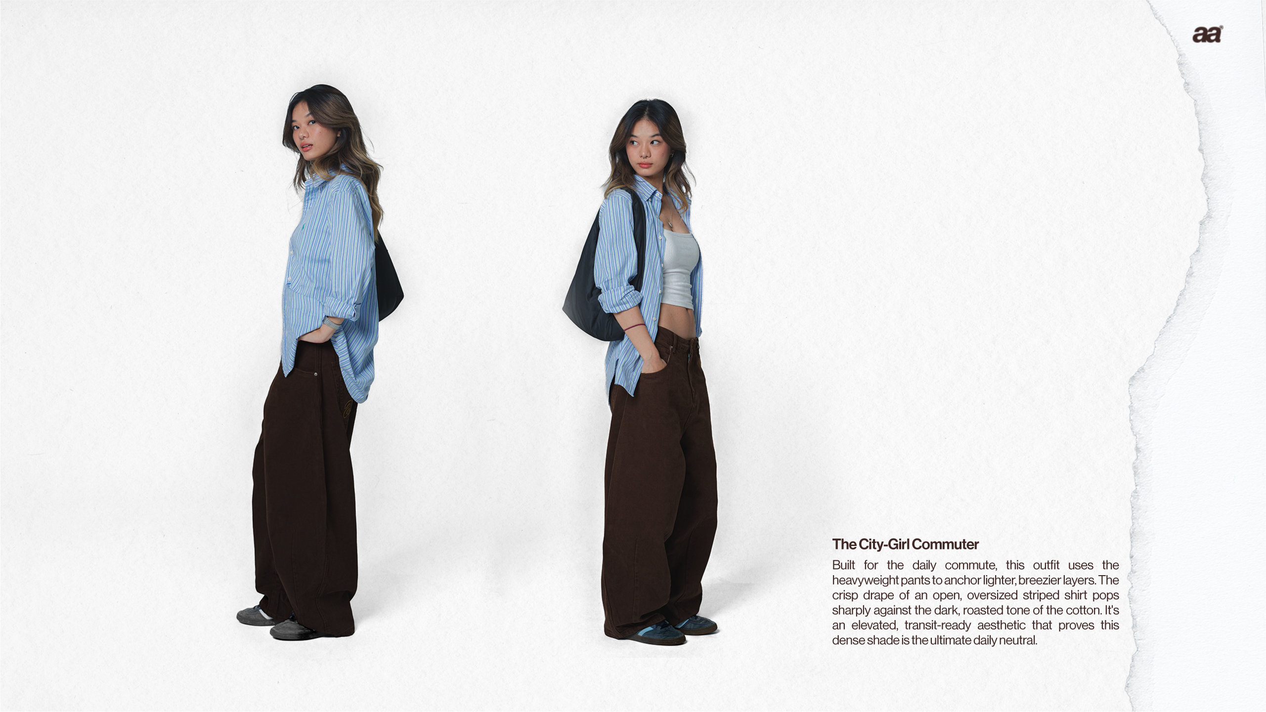 We engineered this release with a significantly thicker cotton, built to create a massive, deliberate drape that holds its shape. The color is not just brown; it’s a deeply saturated, roasted cacao that acts as the ultimate heavy-duty neutral. Whether you are anchoring a crisp button-down or contrasting a sleek, asymmetrical top, this dense pigment provides a premium, earthy foundation that elevates the entire fit.