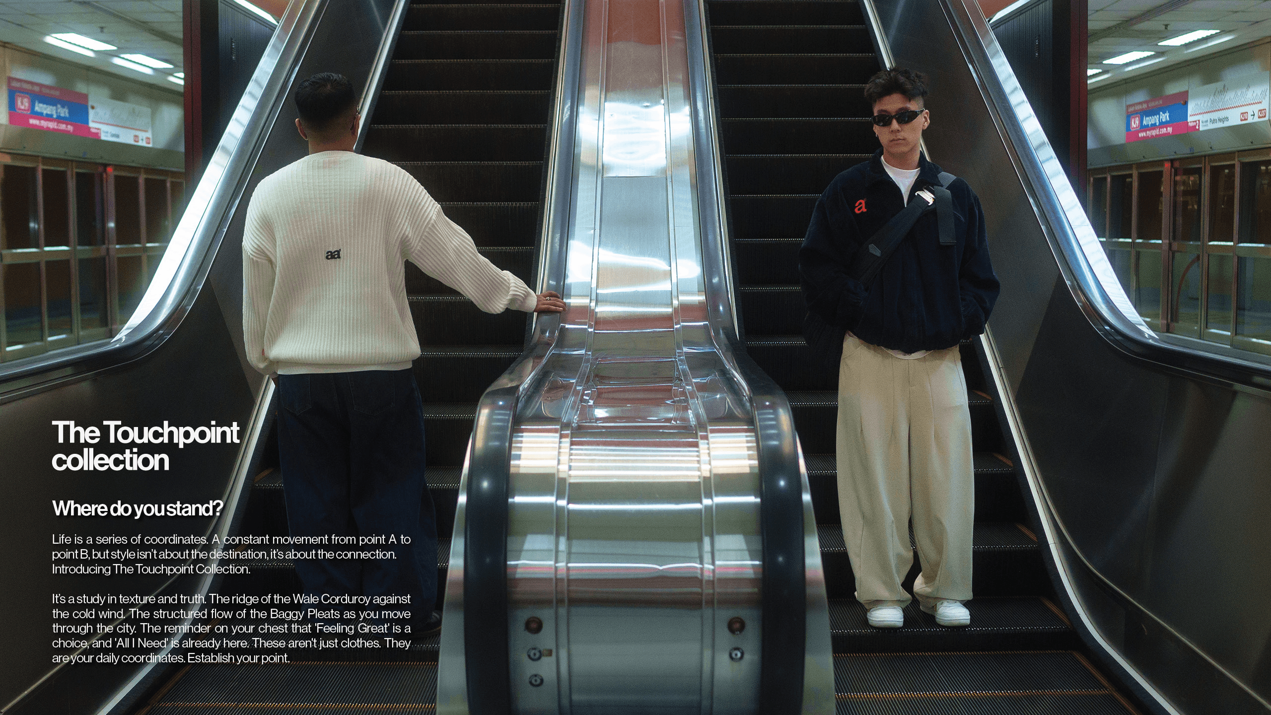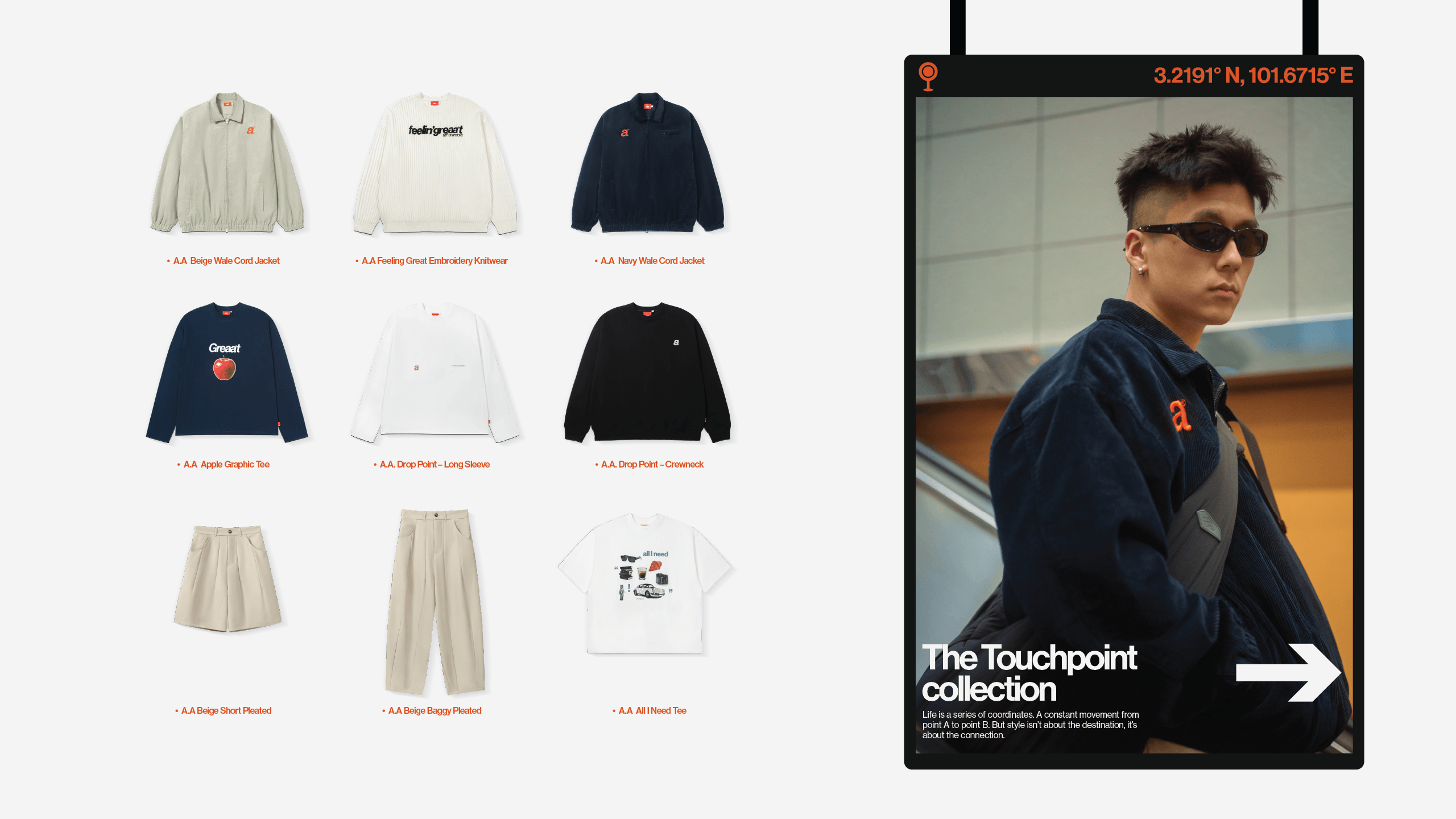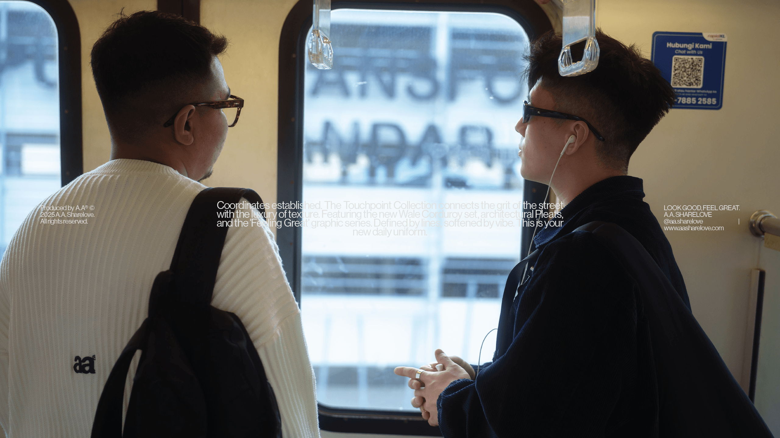 Coordinates established. The Touchpoint Collection connects the grit of the street with the luxury of texture. Featuring the new Wale Corduroy set, architectural Pleats, and the 'Feeling Great' graphic series. Defined by lines, softened by vibe. This is your new daily uniform.