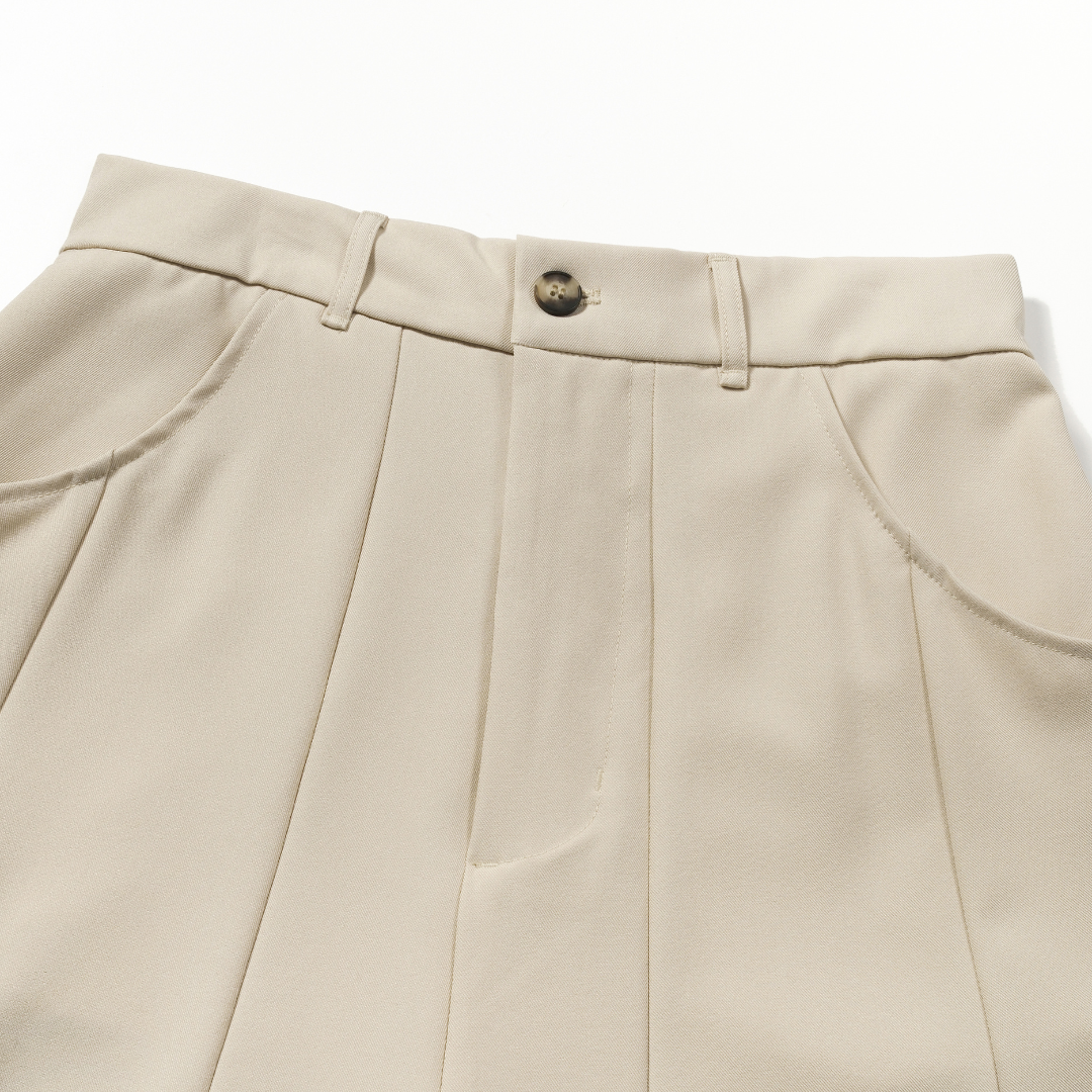 Soft fabric, neutral tone, YKK zipper, and effortless silhouette — a short pleated pant that works for any occasion.