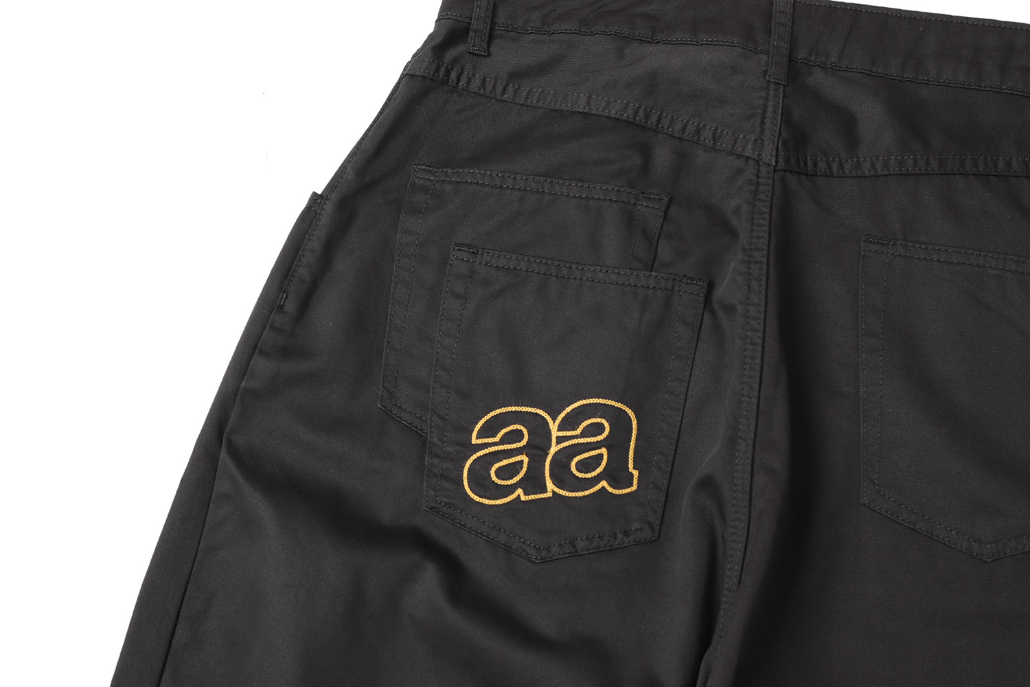 A dual-pocket design accented with the chain-stitched AA label creates a refined individuality against pure black.