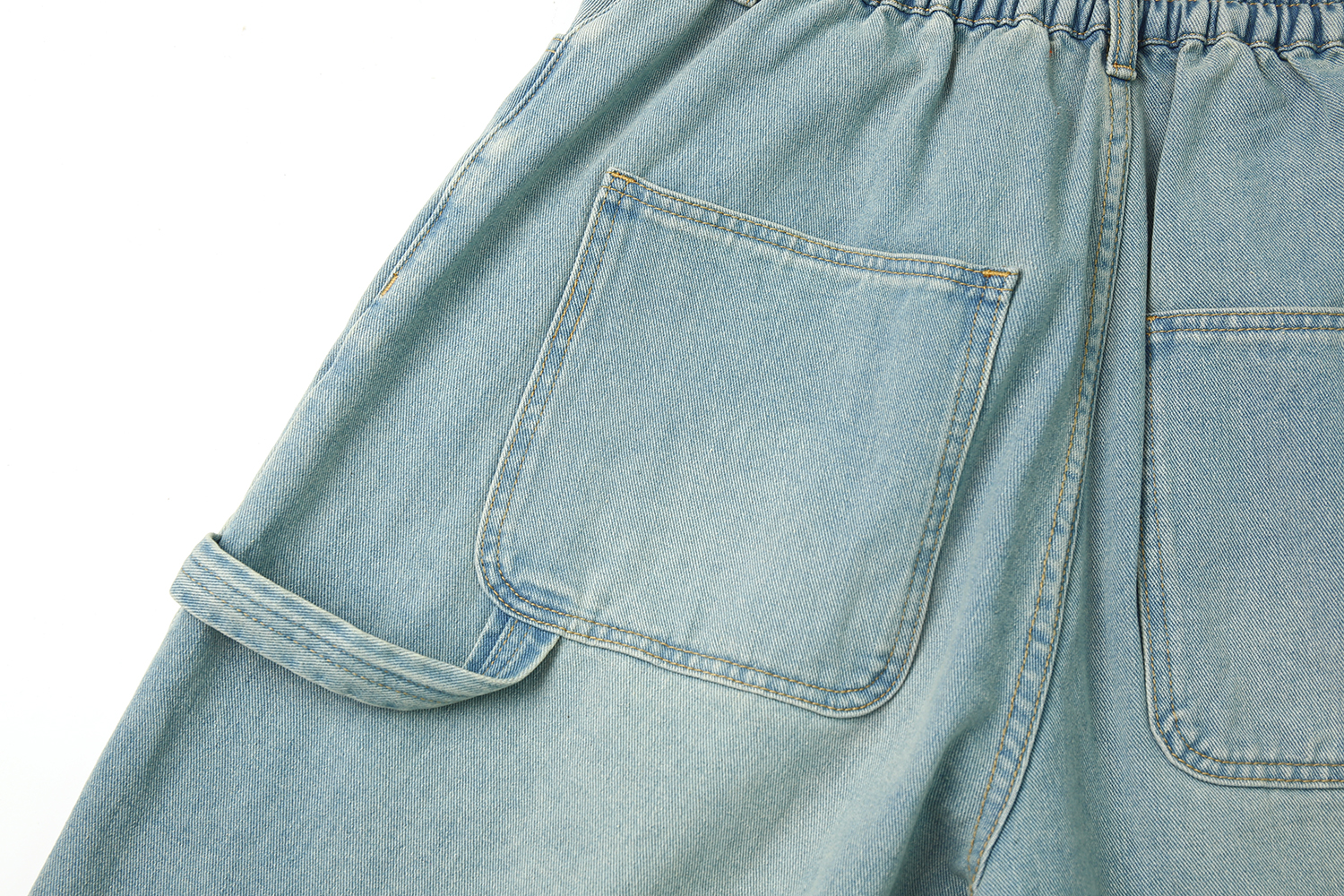 Featuring a relaxed fit, tool loop detail, oversized rear pockets, and an elastic waistband for all-day ease — these light-wash shorts are your go-to for skate days, studio time, or just chilling under the sun.